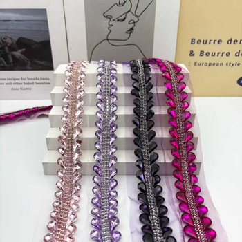 Personalizar en diferentes tamaños de cuentas de cristal de organza cortado pétalo de flor con parche de cadena de diamantes de imitación para vestido de fiesta de graduación