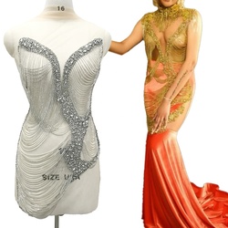Nieuw Sexy Ontwerp Zilver Goud Spiegel Oppervlak Naaien Steen Kralen Lijfje Applique Voor Feestjurken